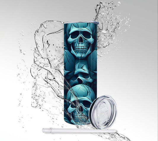 Teal Stacked Skulls, Sublimation Insulated Tumbler