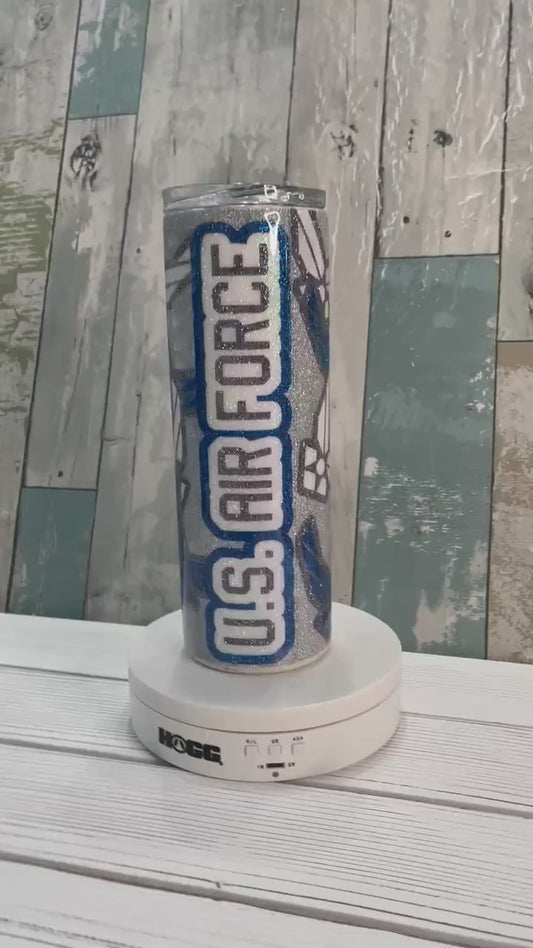 US Air Force Tumbler: Glitter Epoxy Stainless Steel Cup, Military Gift