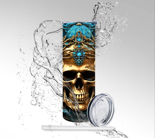 Gold & Turquoise Skull, Sublimation Insulated Tumbler
