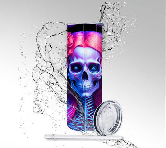 Neon Pink Blacklight Skull, Sublimation Insulated Tumbler