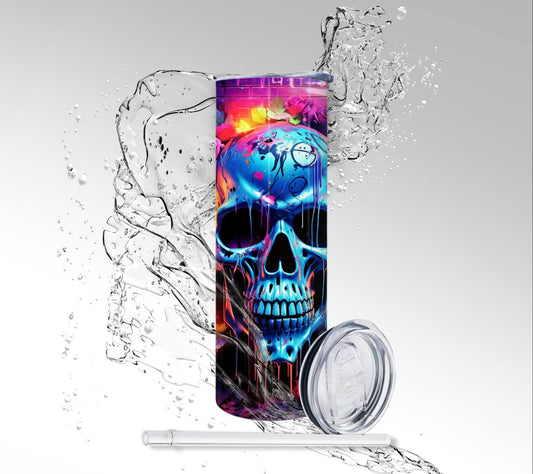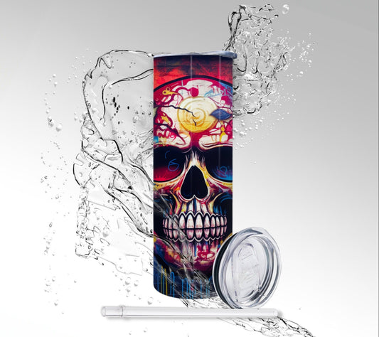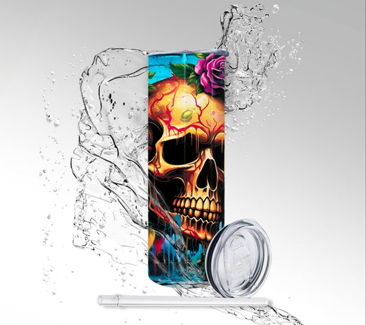 Funhouse Paint Drip Water Skull, Sublimation Insulated Tumbler