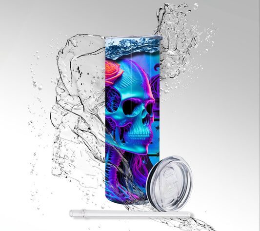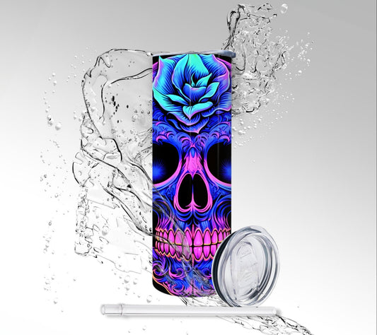 Neon Blacklight Skull & Flowers, Sublimation Insulated Tumbler