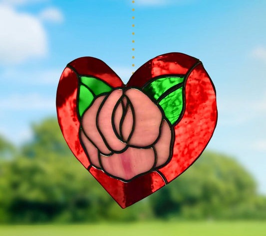 Rose Heart Stained Glass, Holiday Decor For Windows