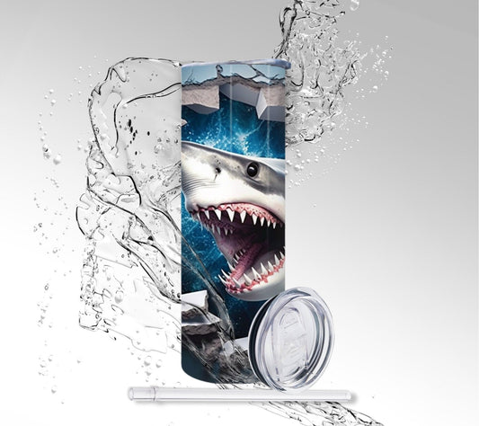 Ocean Cracked Wall Shark, Sublimation Insulated Tumbler