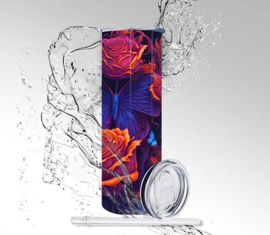 Orange Roses & Butterflies, Sublimation Insulated Tumbler