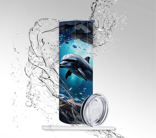 Ocean Cracked Wall Dolphin, Sublimation Insulated Tumbler